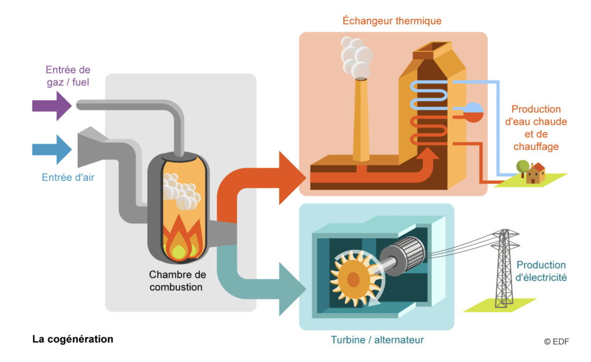La majorité des producteurs en Bretagne, 80%, se chauffent grâce à la cogénération. Grâce à un groupe électrogène, de la chaleur est produite, non pas grâce au fioul, mais au gaz naturel. Derrière ce groupe électrogène, qui fonctionne grâce à un moteur à piston similaire à ce qui peut se faire dans une voiture, un alternateur est utilisée et permet de récupérer une électricité qui est revendue à EDF.