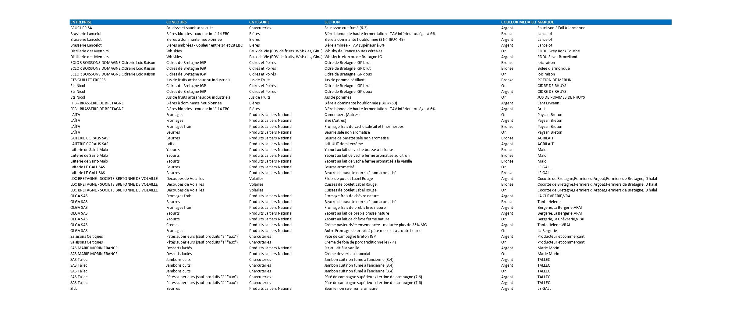 Marie Morin repart aussi avec une médaille d’Or et une d’Argent. Enfin, la Laiterie Le Gall, la laiterie Coralis, la Laiterie de Saint-Malo et la Sill contribuent également au palmarès breton par des distinctions en argent et bronze.