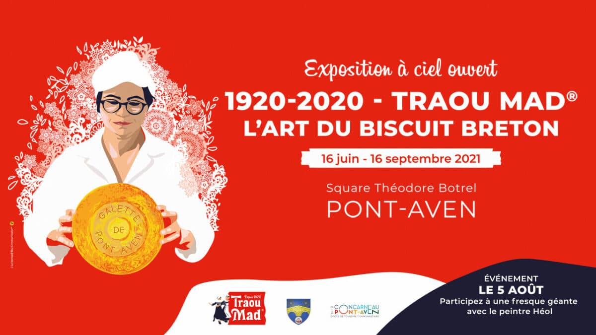 Jusqu’au 16 septembre, la biscuiterie Traou Mad®, membre de Produit en Bretagne, fête son centenaire à Pont-Aven (Finistère). La ville qui l’a vu naître transforme ainsi le Square Théodore Botrel en véritable musée à ciel ouvert !
