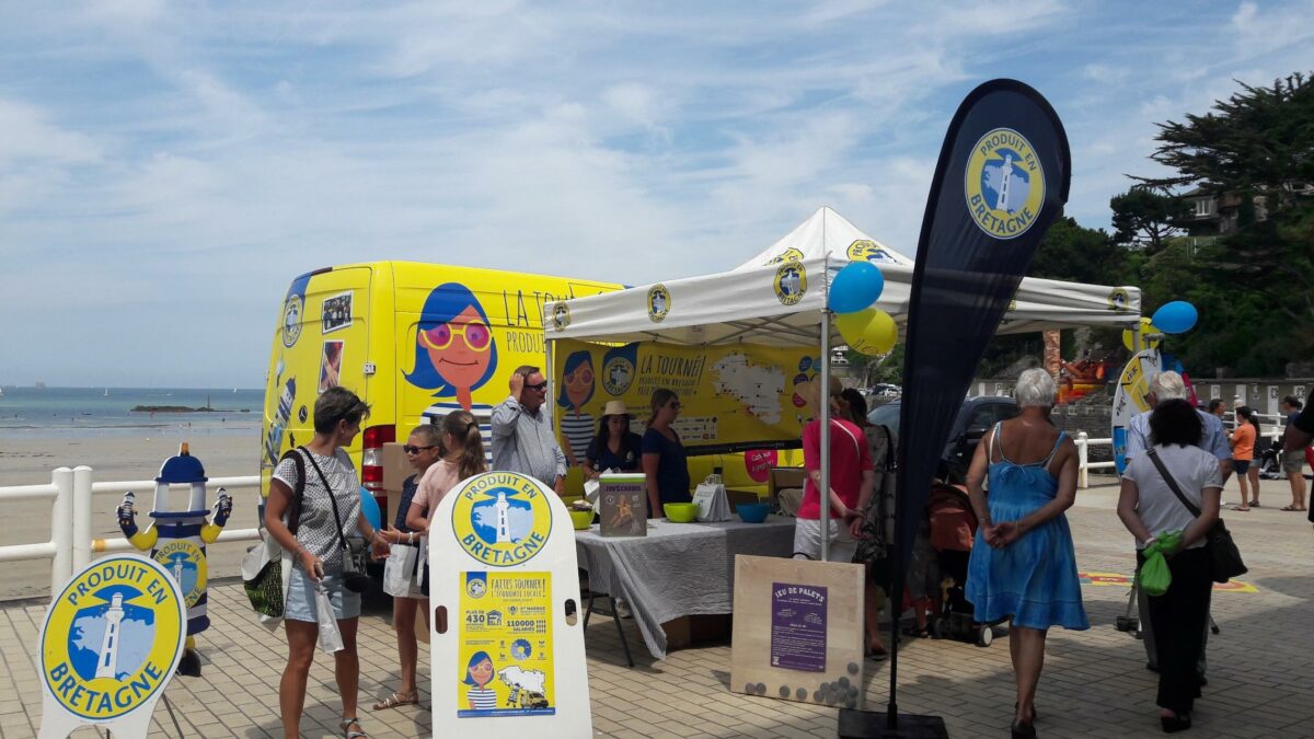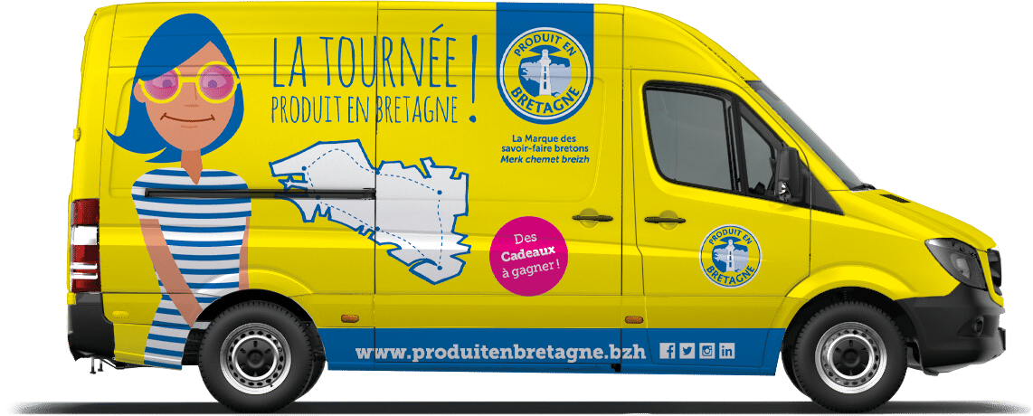 Depuis 2014, Produit en Bretagne part, chaque été, à la rencontre des vacanciers, Bretons d’un jour ou de toujours. A bord d’une camionnette totalement décorée en jaune et bleu, nos 2 supers animateurs sillonnent la Bretagne et ses 5 départements, pour venir à leur rencontre, lors de notre tournée estivale. 7 semaines ne sont pas de trop pour réaliser ce véritable tro breizh (tour de la Bretagne), qui fait étape dans plus de 30 villes en Bretagne chaque année.